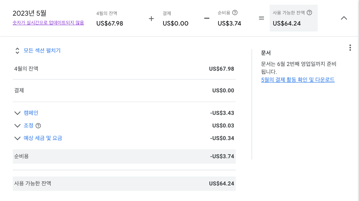 구글 애즈 광고비용 : 5,127원 ( 환율 2022년 10월쯤 결재일 기준 )